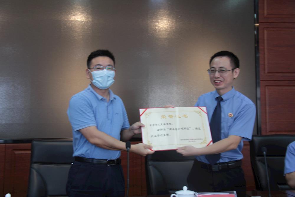 8月16日,津市检察院举行“湖南省二〇二〇届文明单位”授牌仪式。津市市委常委、宣传部部长周高为津市检察院授牌。